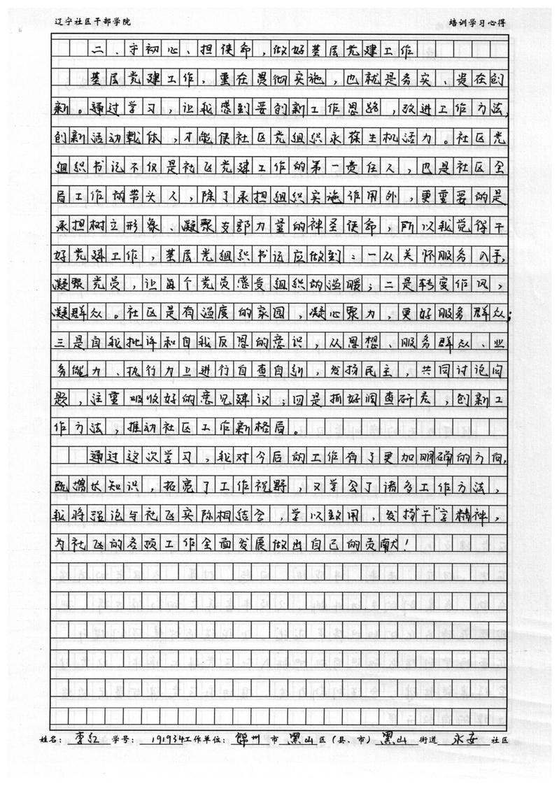 锦州市黑山县黑山街道永安社区书记李红学习心得