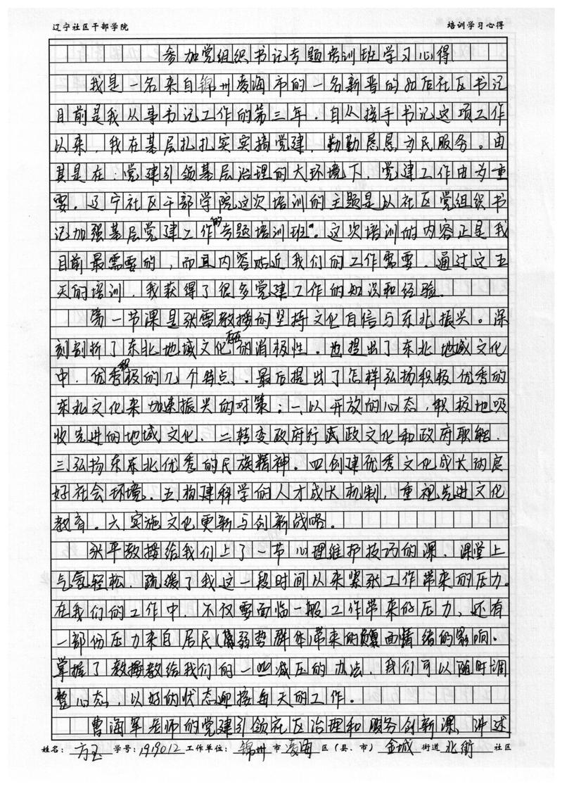 锦州市凌海市金城街道北街社区书记方玉学习心得