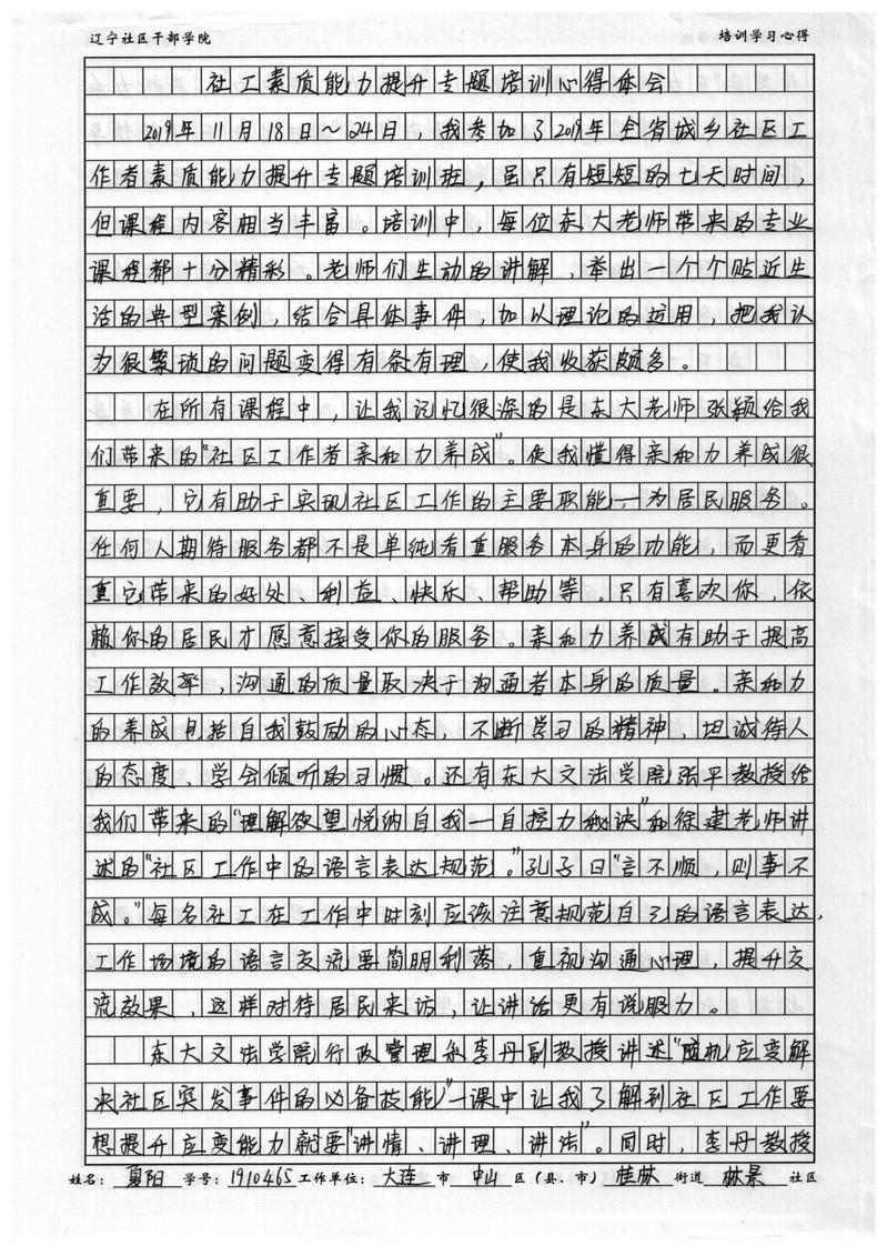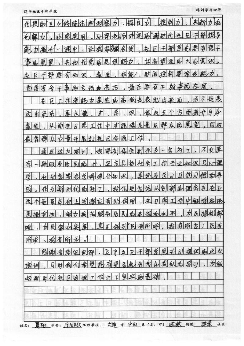 大连市中山区桂林街道林景社区工作者夏阳学习心得