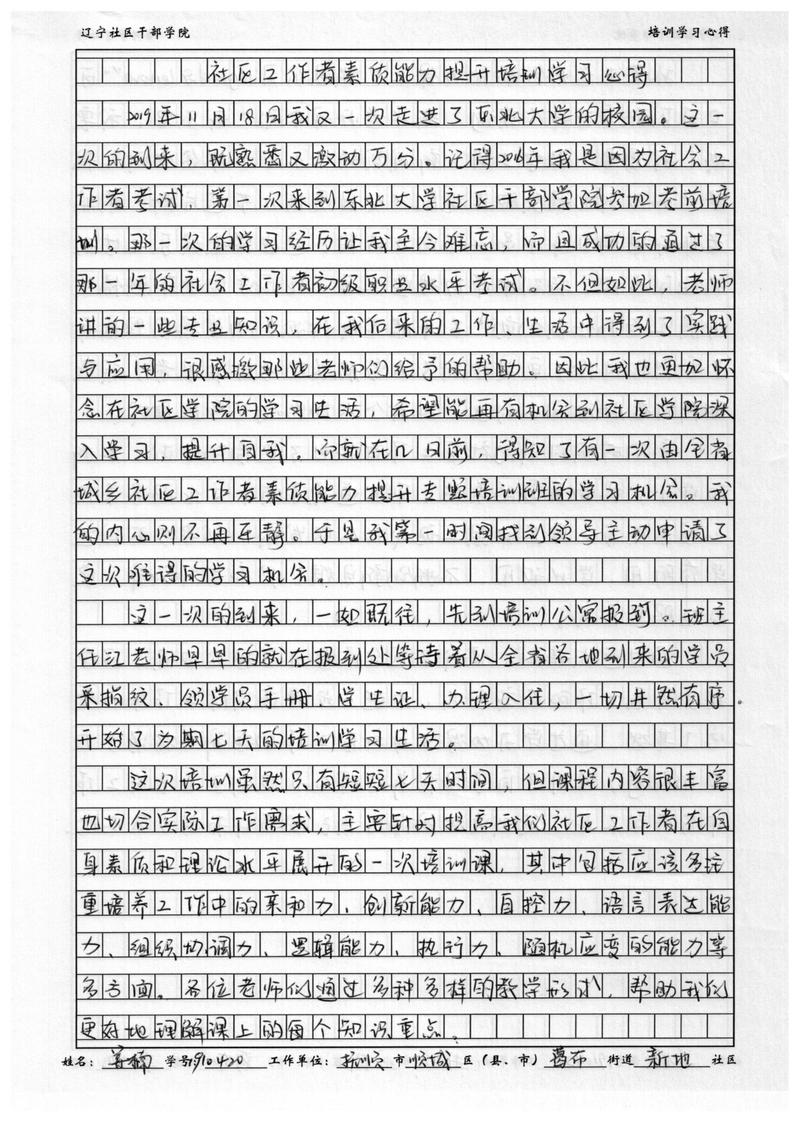 抚顺市顺城区葛布街道新地社区主任姜楠学习心得