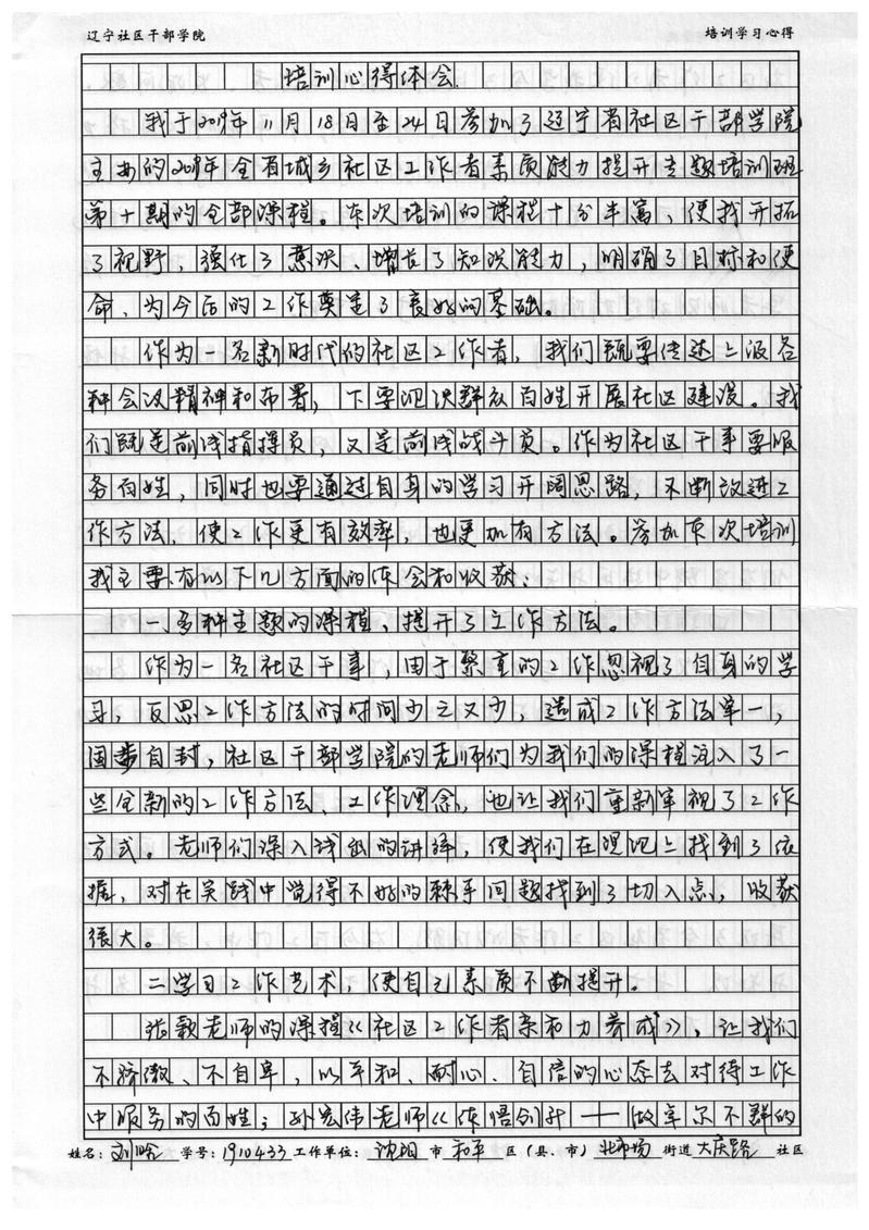 沈阳市和平区北市场街道大庆路社区干事刘晗学习心得