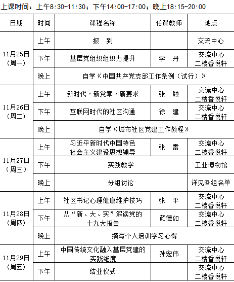 2019年全省城乡社区党组织书记第二十期(总第88期)培训班课程安排