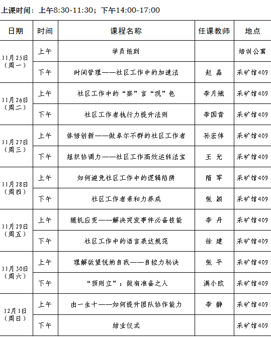 2019年全省城乡社区工作者素质能力提升专题培训班第十一期(总第68期)课程安排