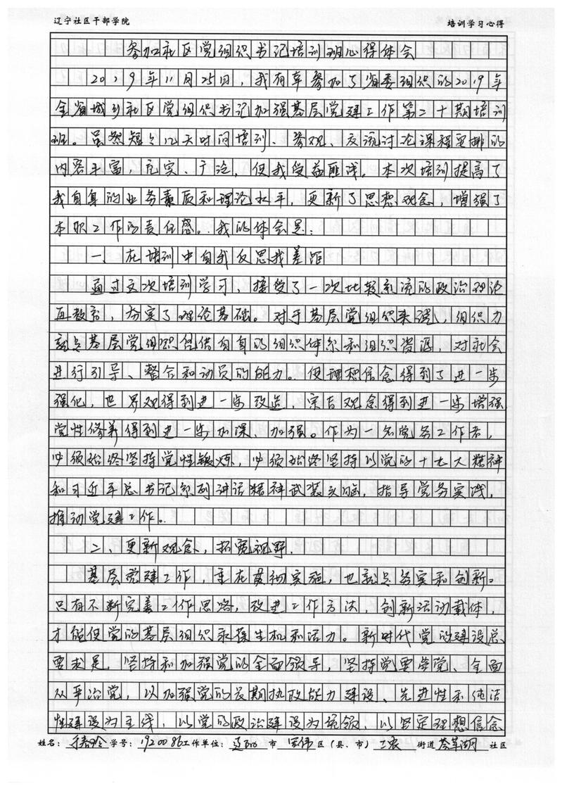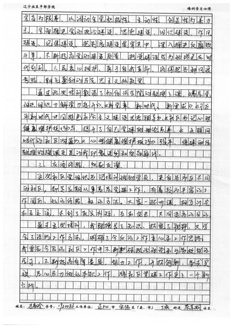 辽阳市宏伟区工农街道荟萃湖社区副主任于春玲培训心得