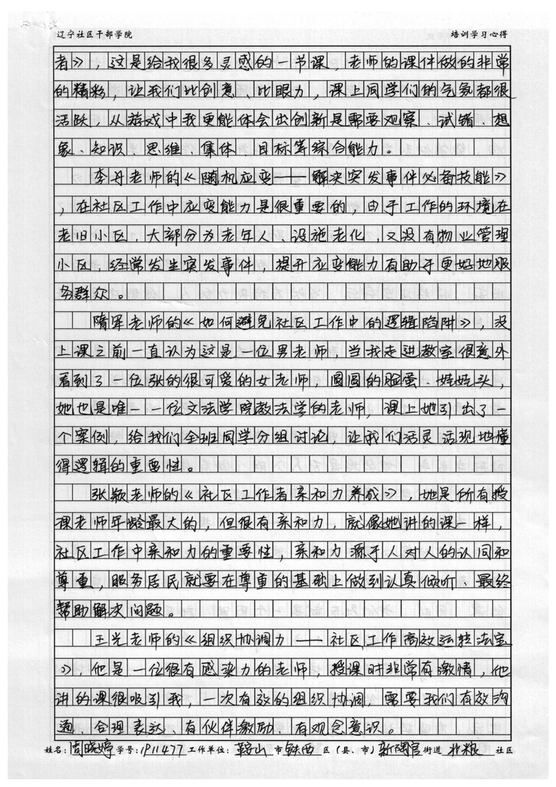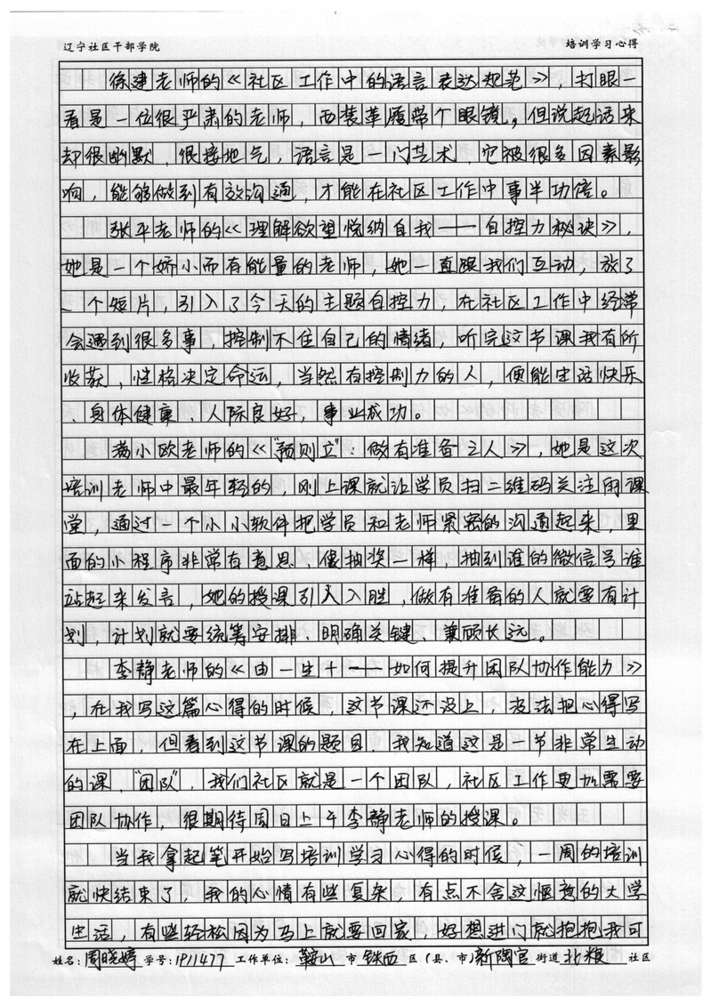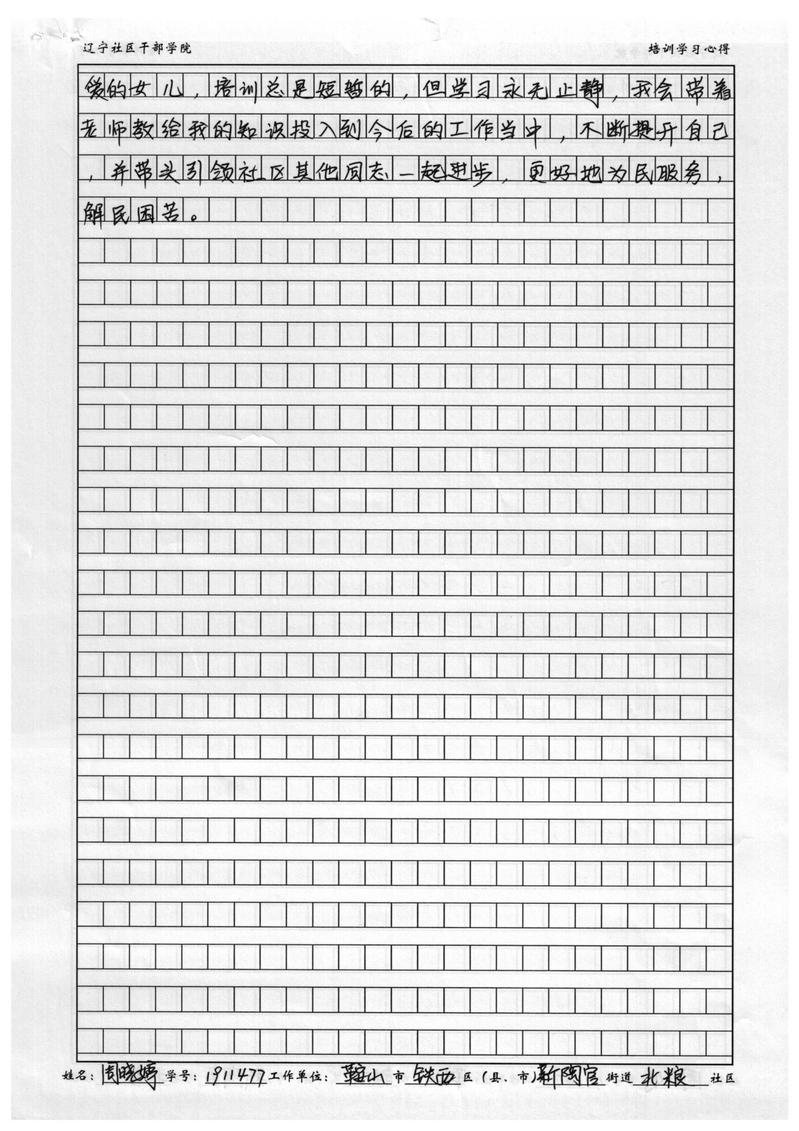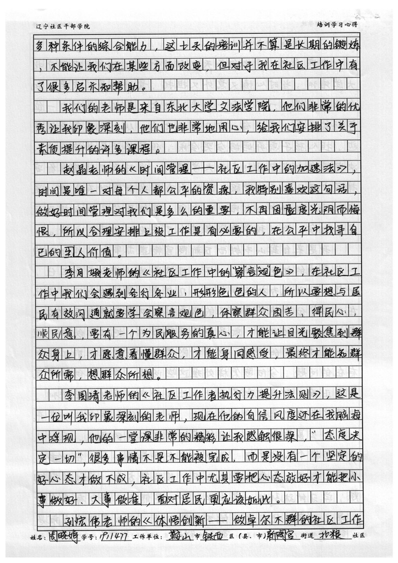 鞍山市铁西区新陶官街道北粮社区副书记周晓婷培训学习心得