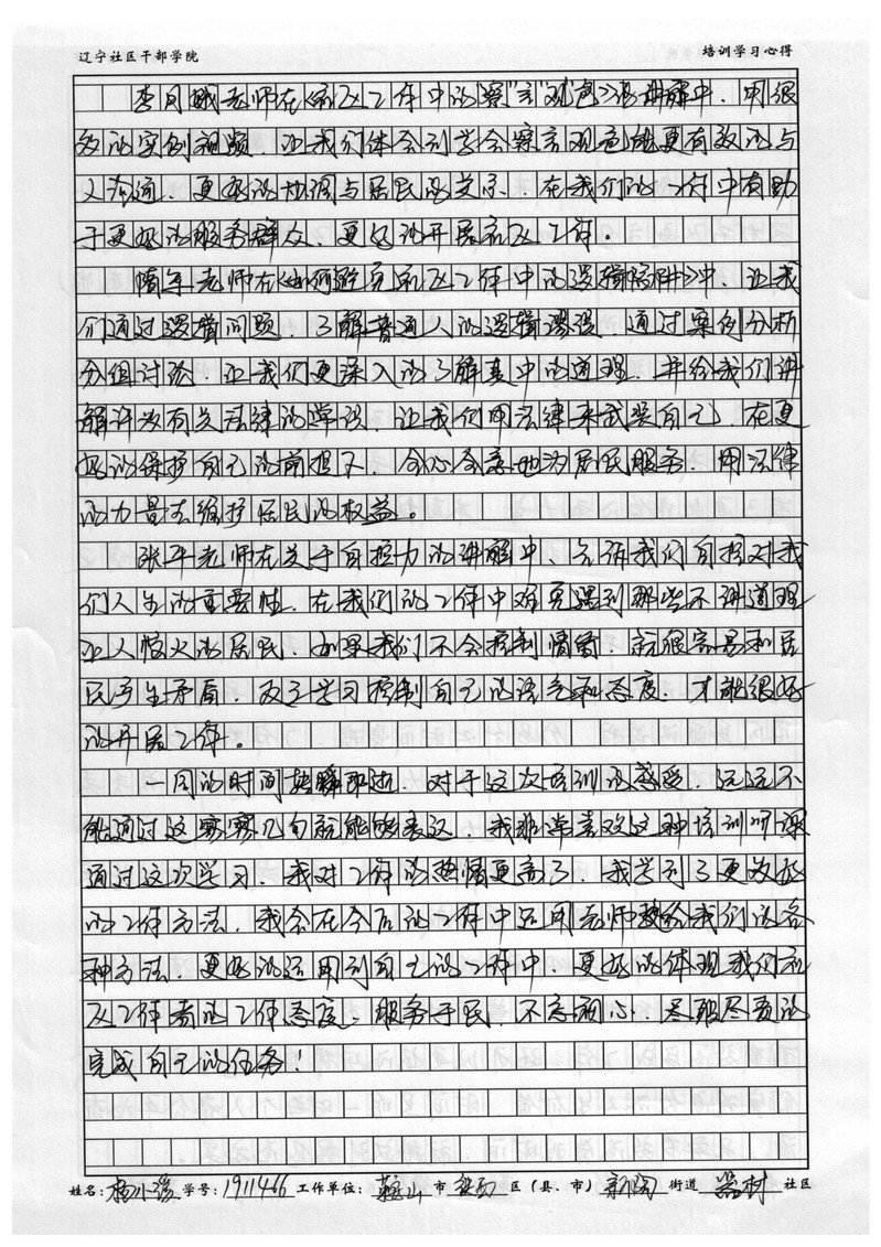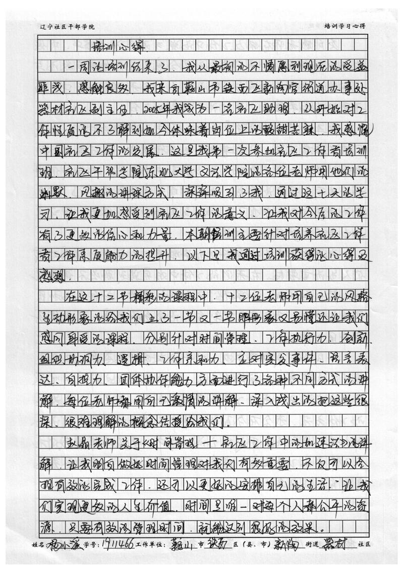 鞍山市铁西区新陶官街道器材社区副书记杨小溪培训学习心得