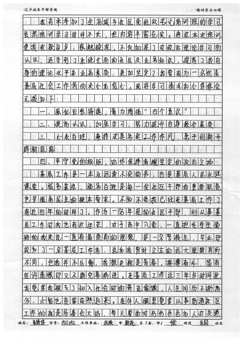 抚顺市新抚区千金街道乐园社区副书记姜婷婷学习心得