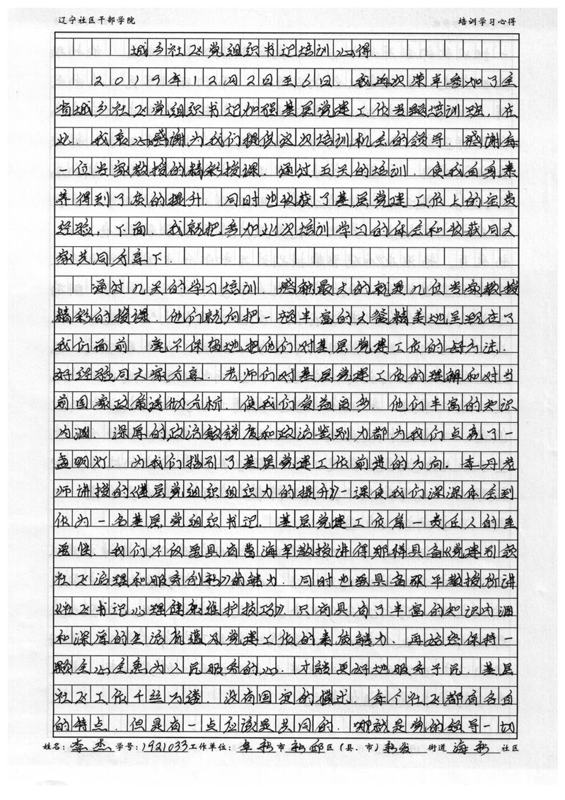 阜新市新邱区新发街道海新社区书记李杰学习心得