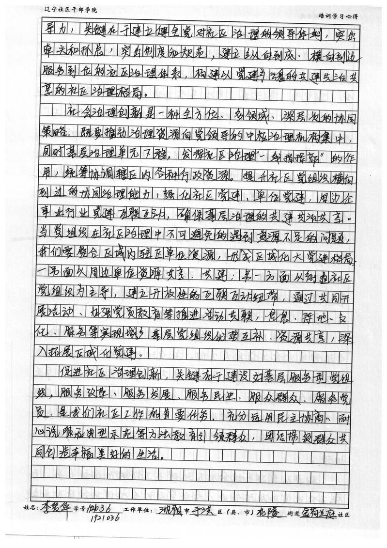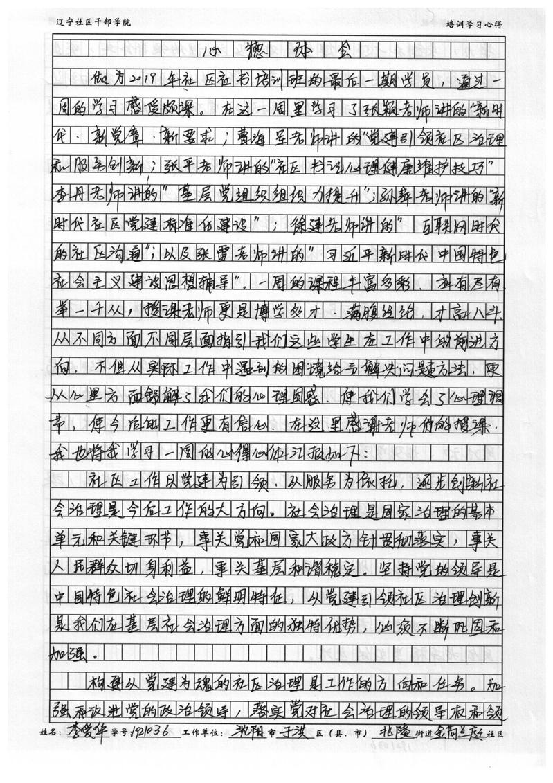沈阳市于洪区北陵街道金荷兰庭社区党委书记李爱华学习心得