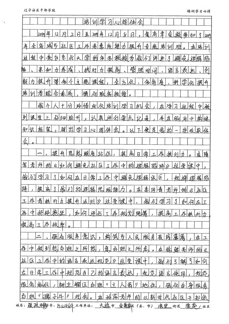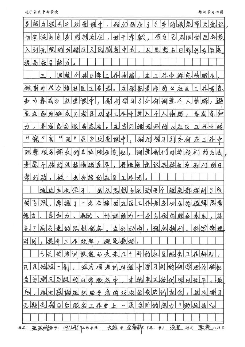 大连市金普新区湾里街道栗苑社区社区工作者张政鹏学习心得