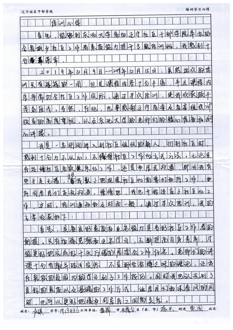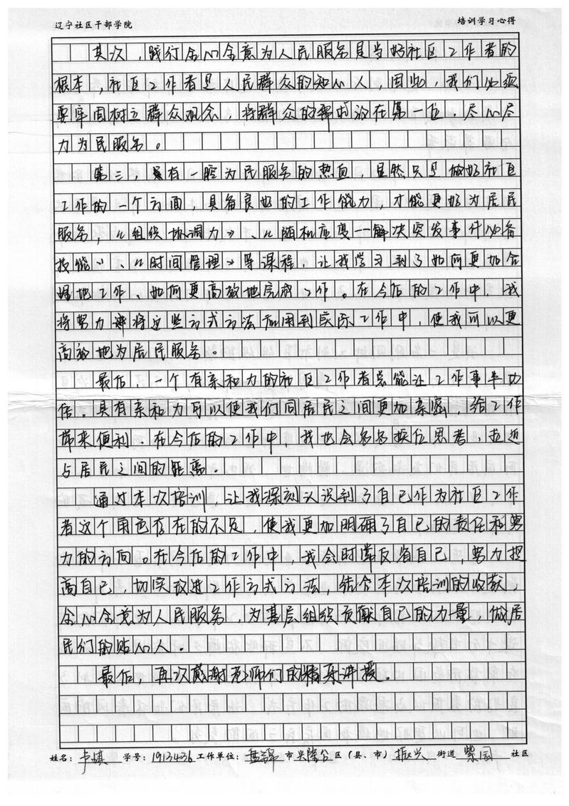 盘锦市兴隆台区振兴街道紫园社区综合B岗卢琪培训心得