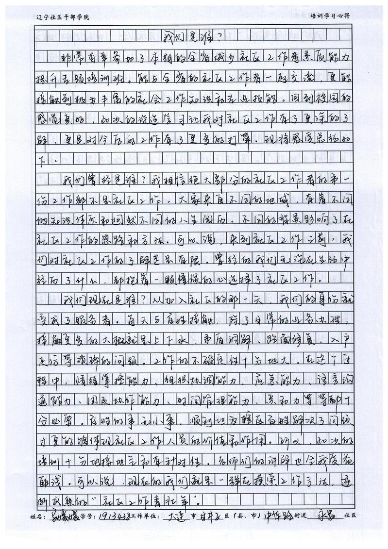 大连市甘井子区中华路街道永昌社区再就业专干马媛媛培训心得