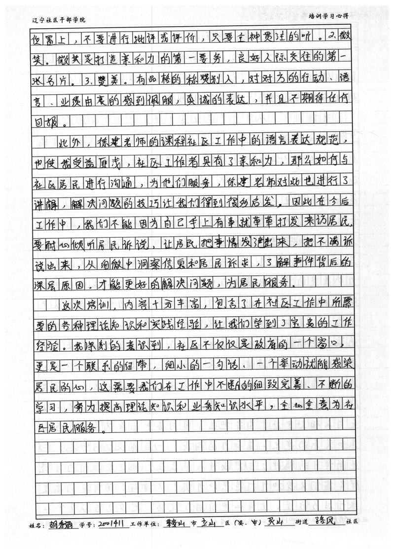 鞍山市立山区灵山街道路风社区党总支副书记胡秀娟学习心得