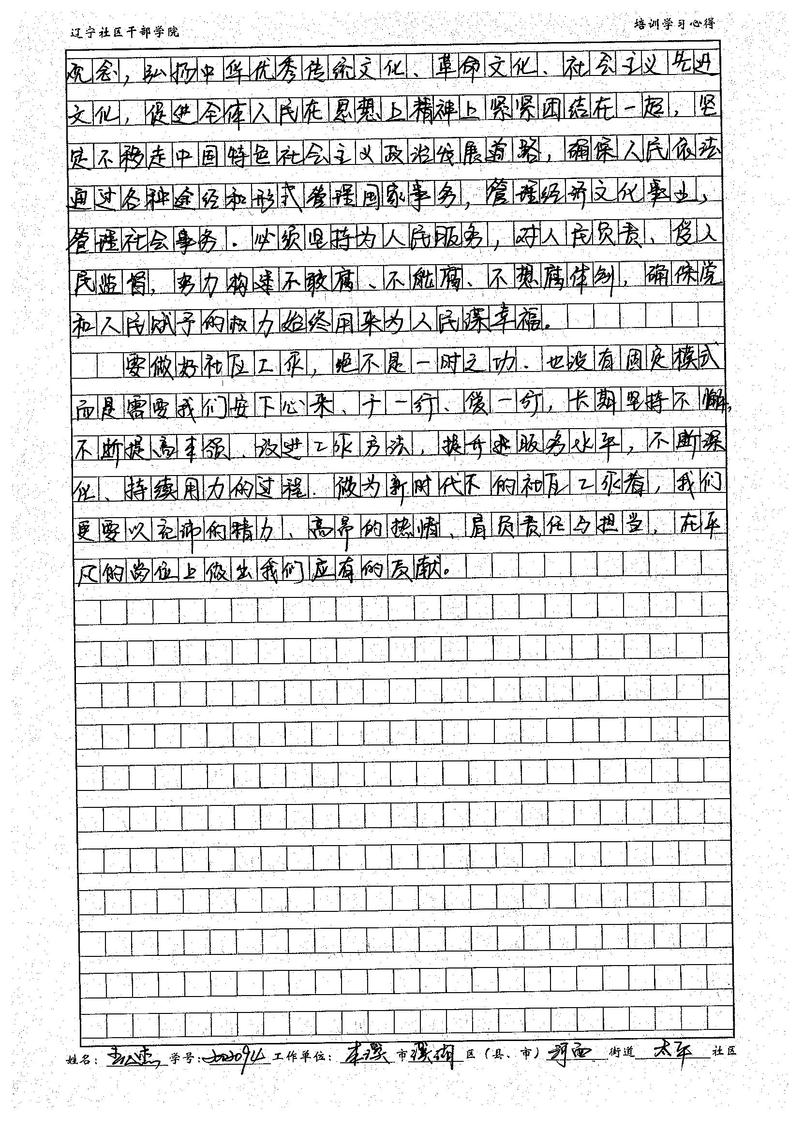 本溪市溪湖区河西街道太平社区书记王心杰学习心得