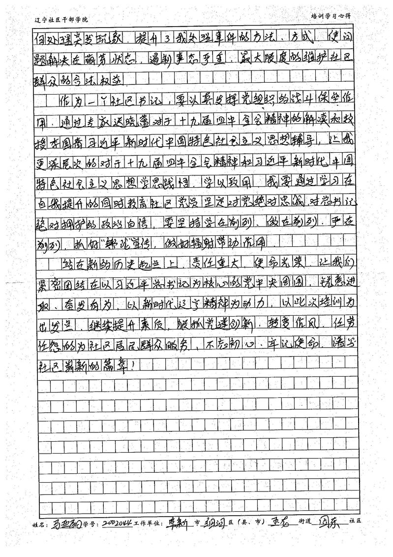 阜新市细河区玉龙街道园东社区书记马亚丽学习心得