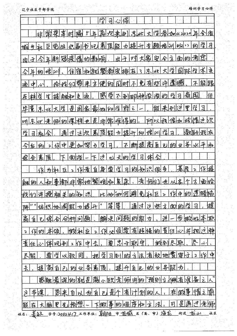 朝阳市龙城区海龙街道龙山社区姜敏学习心得