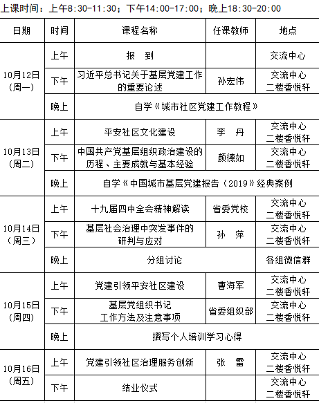 2020年全省城乡社区党组织书记第三期(总92期)培训班课程安排