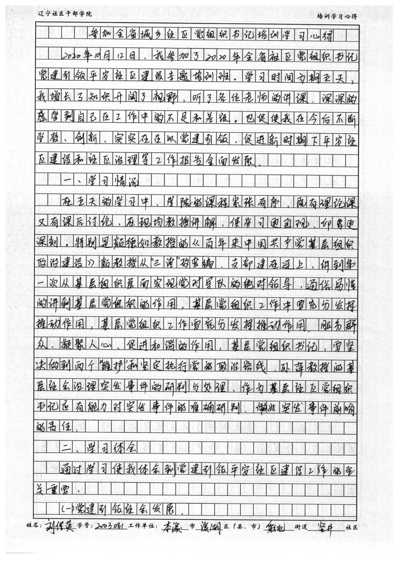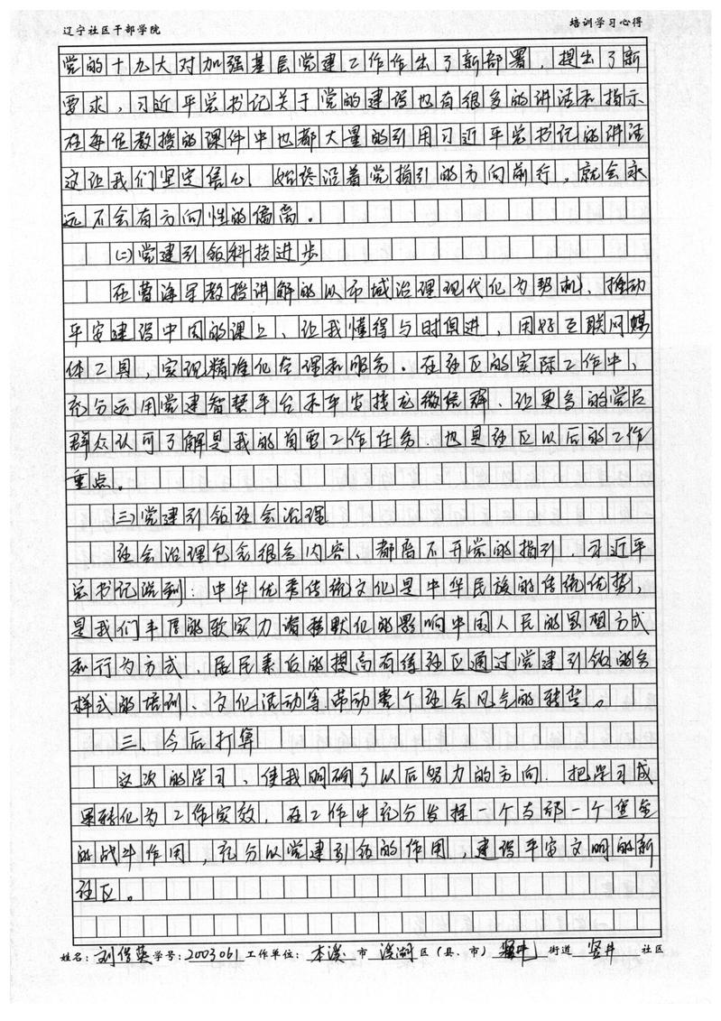 本溪市溪湖区彩屯街道竖井社区书记刘俊英学习心得