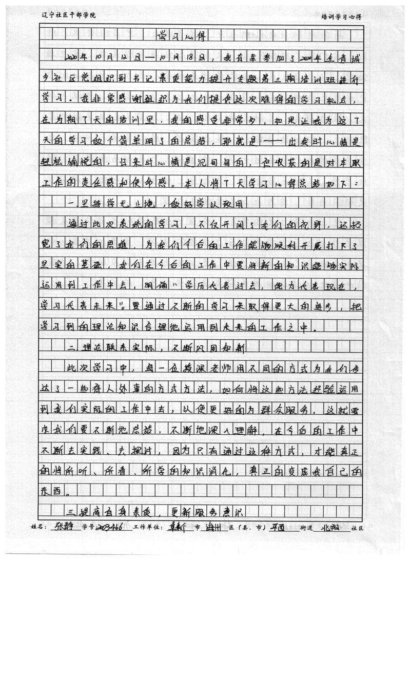 阜新市海州区平西街道北阳社区副书记张静学习心得