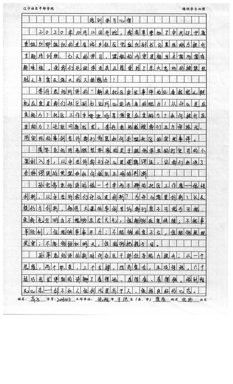 沈阳市于洪区陵西街道北环社区副书记高飞学习心得