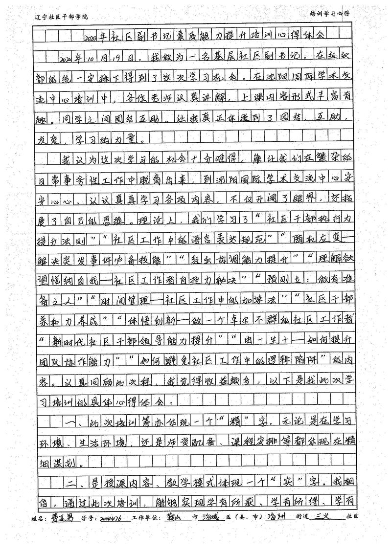 鞍山市海城市海州街道三义社区副书记费亚男学习心得