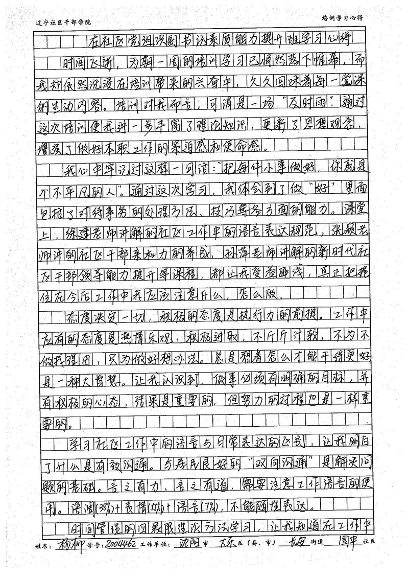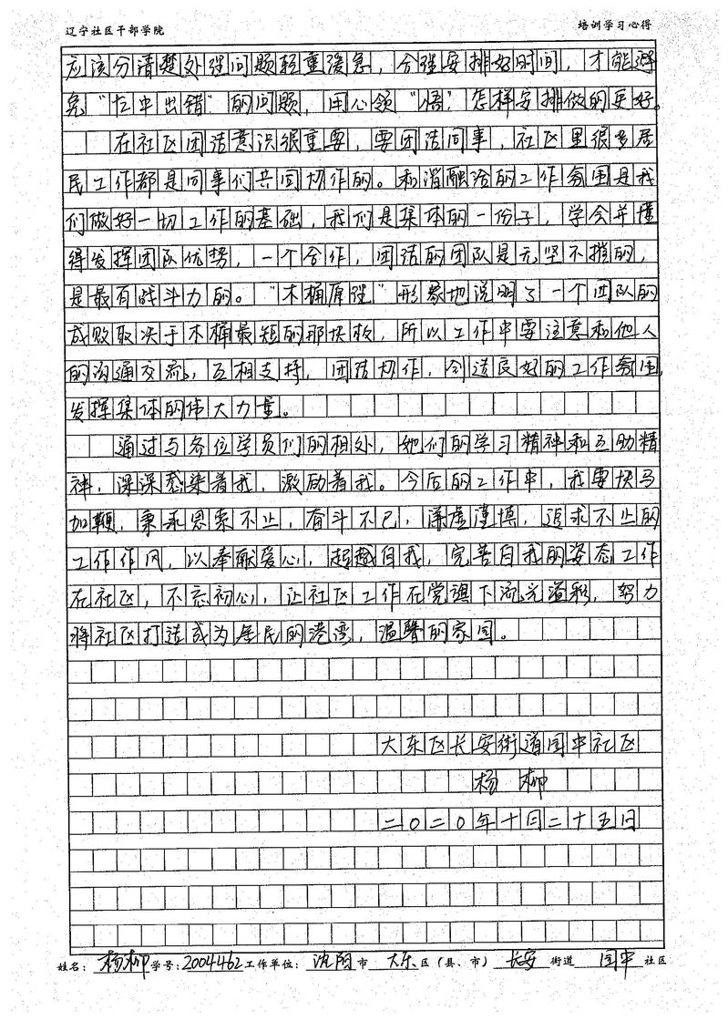 沈阳市大东区长安街道园中社区副书记杨柳学习心得