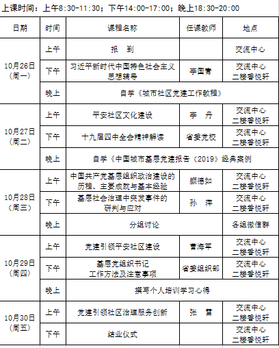 2020年全省城乡社区党组织书记党建引领平安社区建设专题第五期(总94期)培训班课程安排