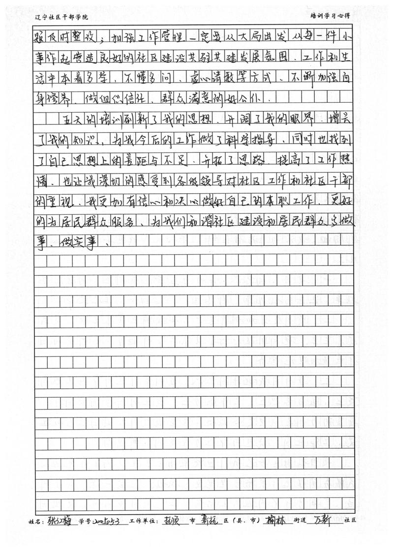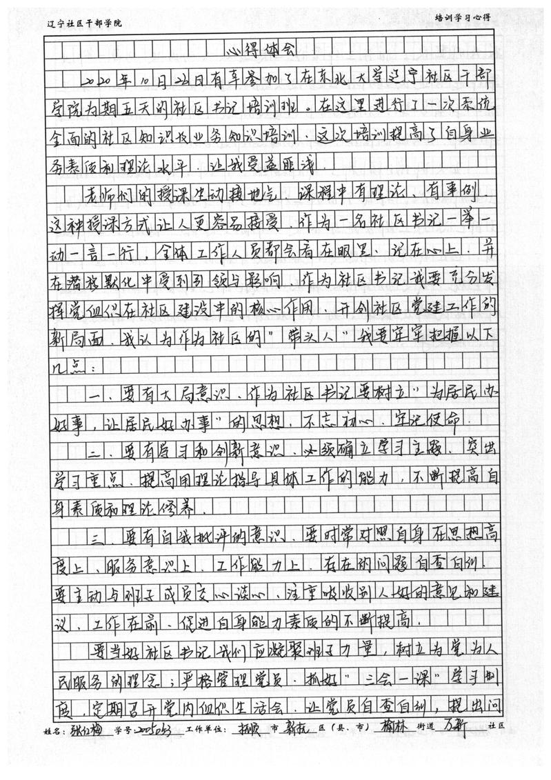 抚顺市新抚区榆林街道万新社区书记张红梅学习心得