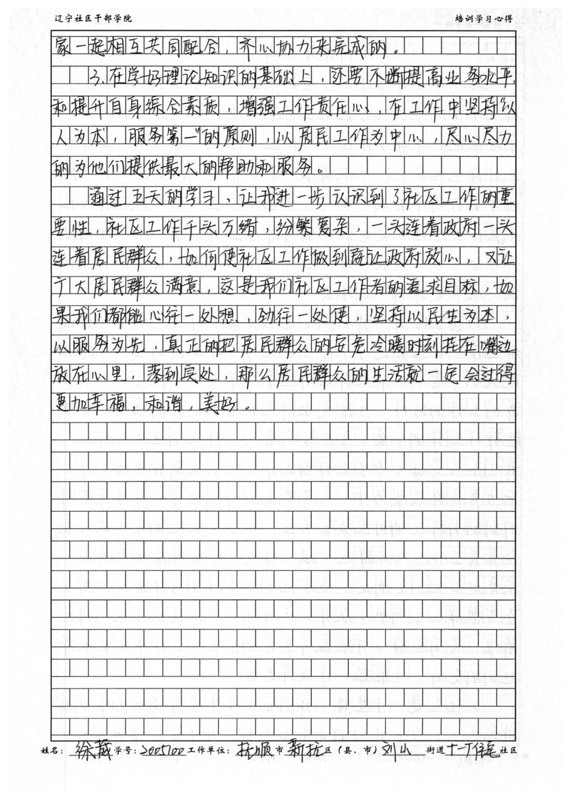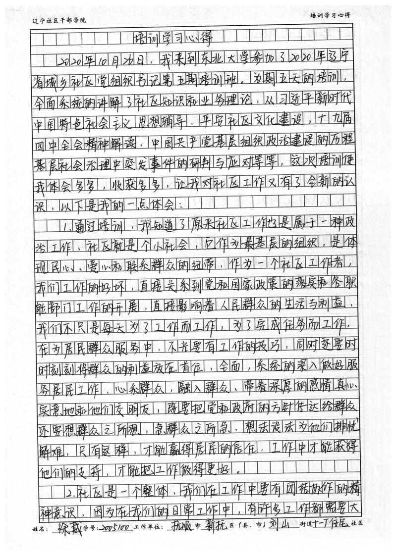抚顺市新抚区刘山街道十一厂住宅社区书记徐葳学习心得