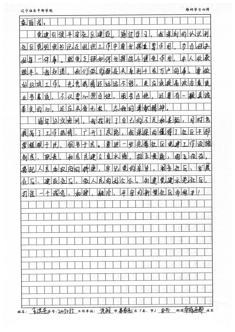 沈阳市苏家屯区中兴街道华府丹郡社区书记王洪杰学习心得