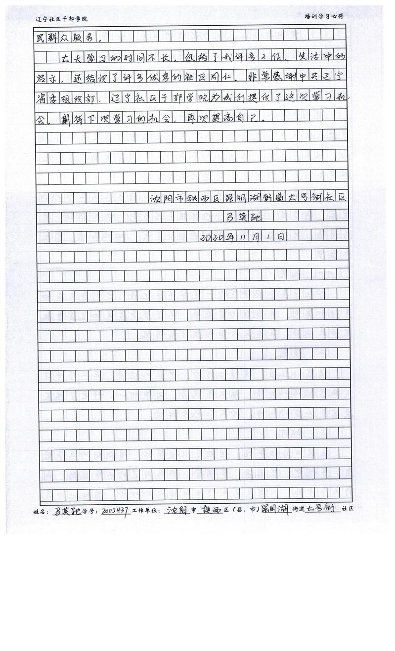 沈阳市铁西区昆明湖街道七号街社区副书记马英驰学习心得