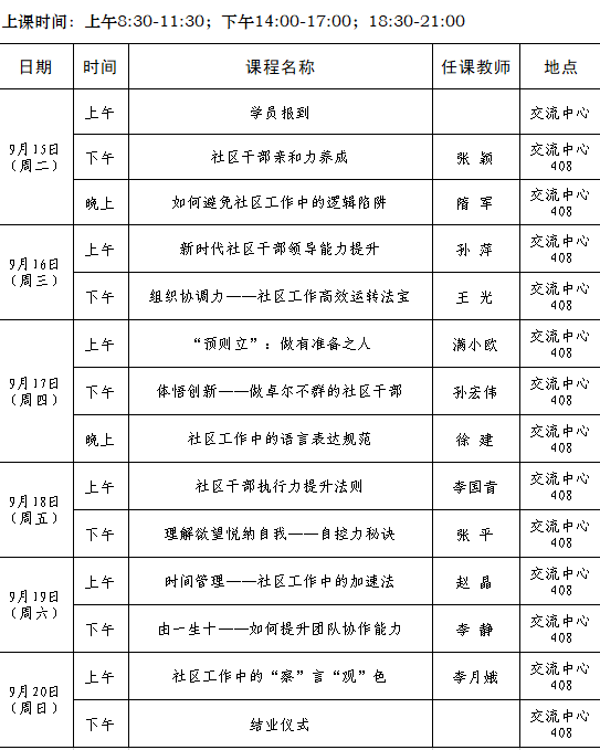 2020年全省城乡社区党组织副书记素质能力提升专题培训班第一期(总71期)培训班课程安排