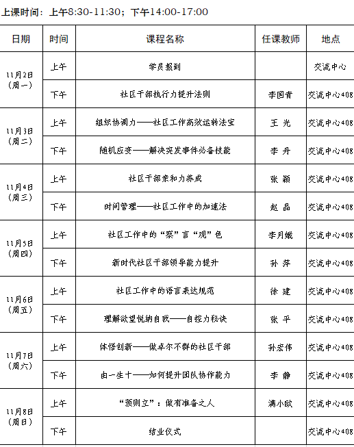 2020年全省城乡社区党组织副书记素质能力提升专题培训班第六期(总76期)培训班课程安排