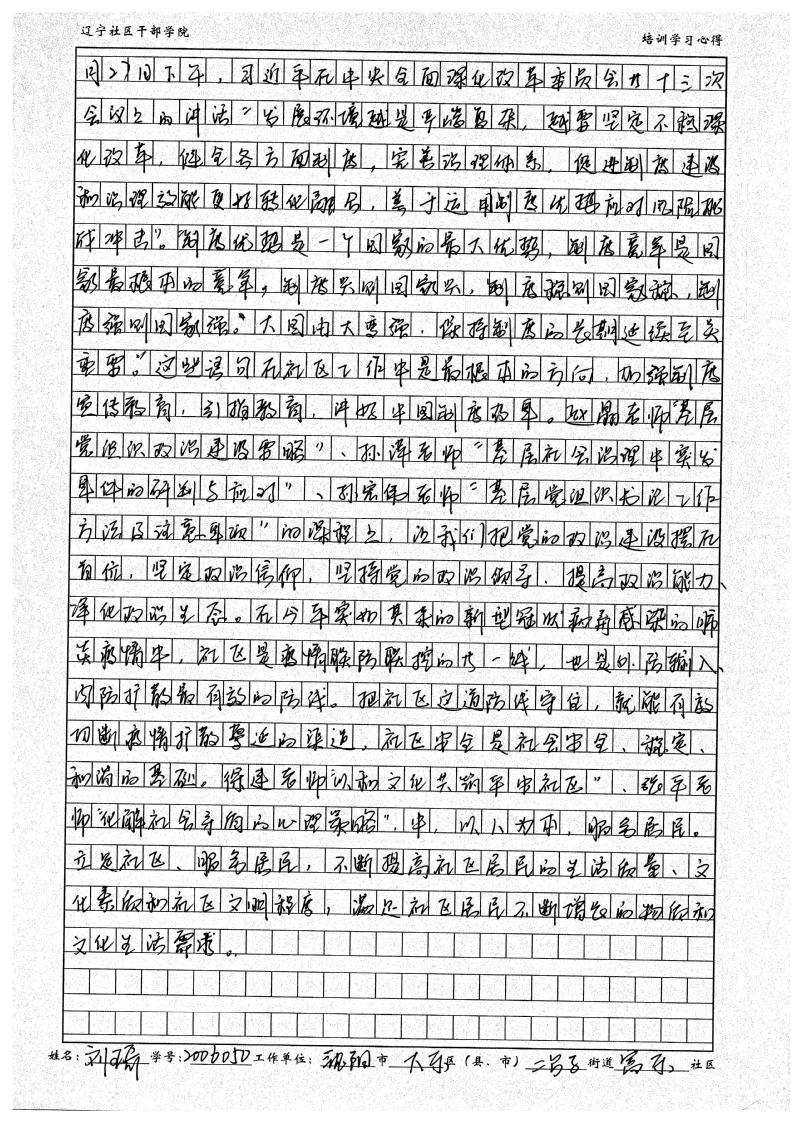 沈阳市大东区二台子街道富东社区书记刘琦学习心得