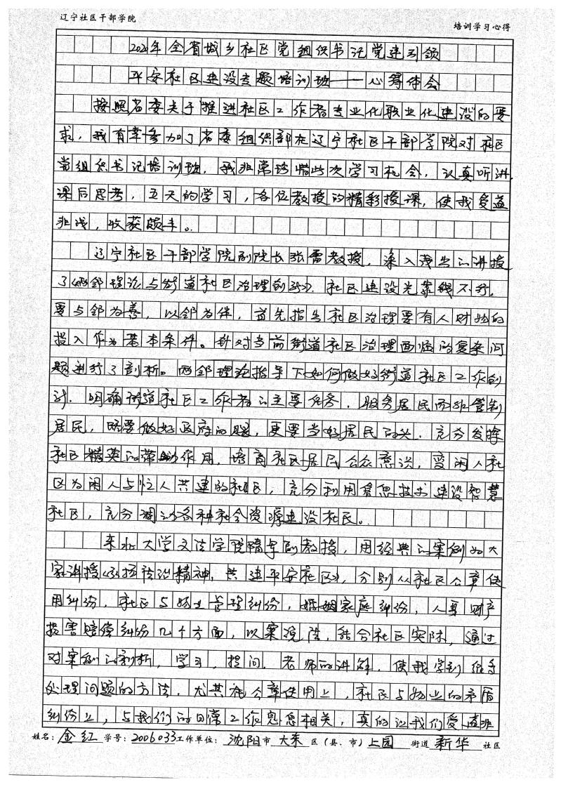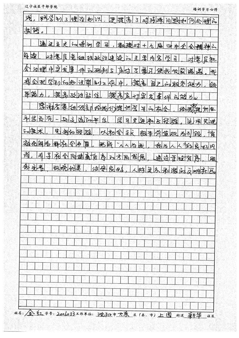 沈阳市大东区上园街道新华社区书记金红学习心得