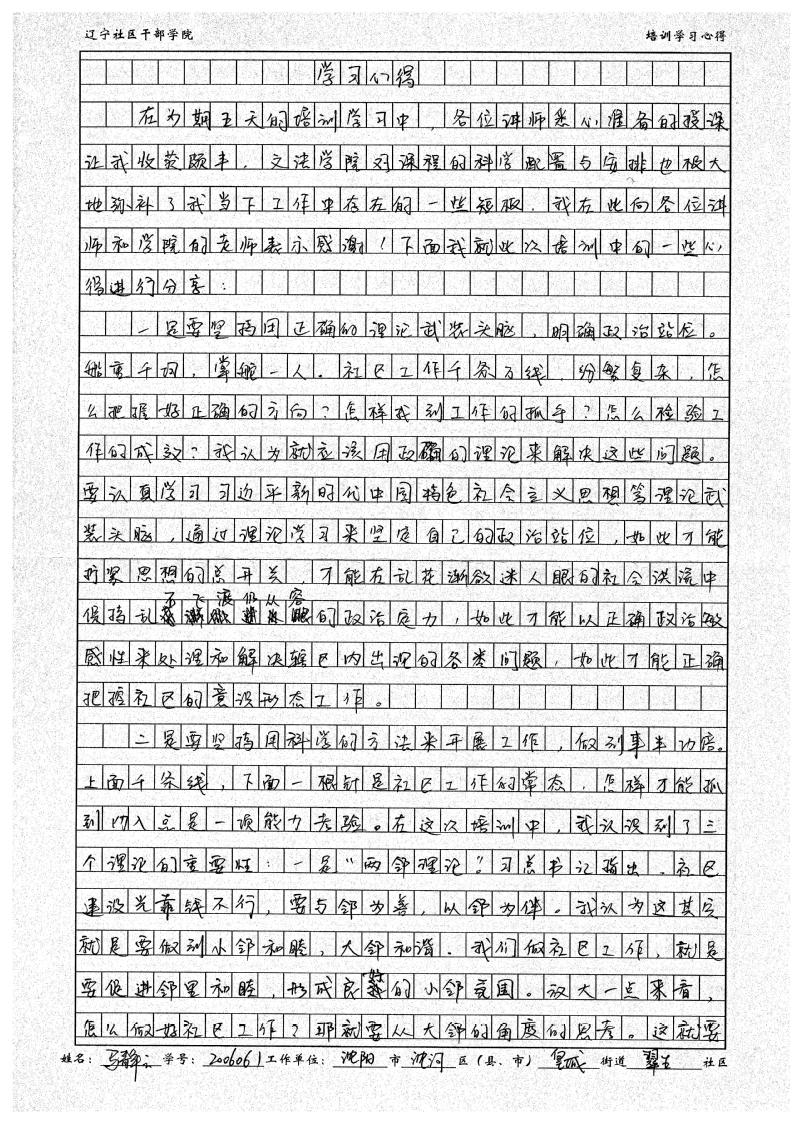 沈阳市沈河区皇城街道翠生社区书记马静云学习心得