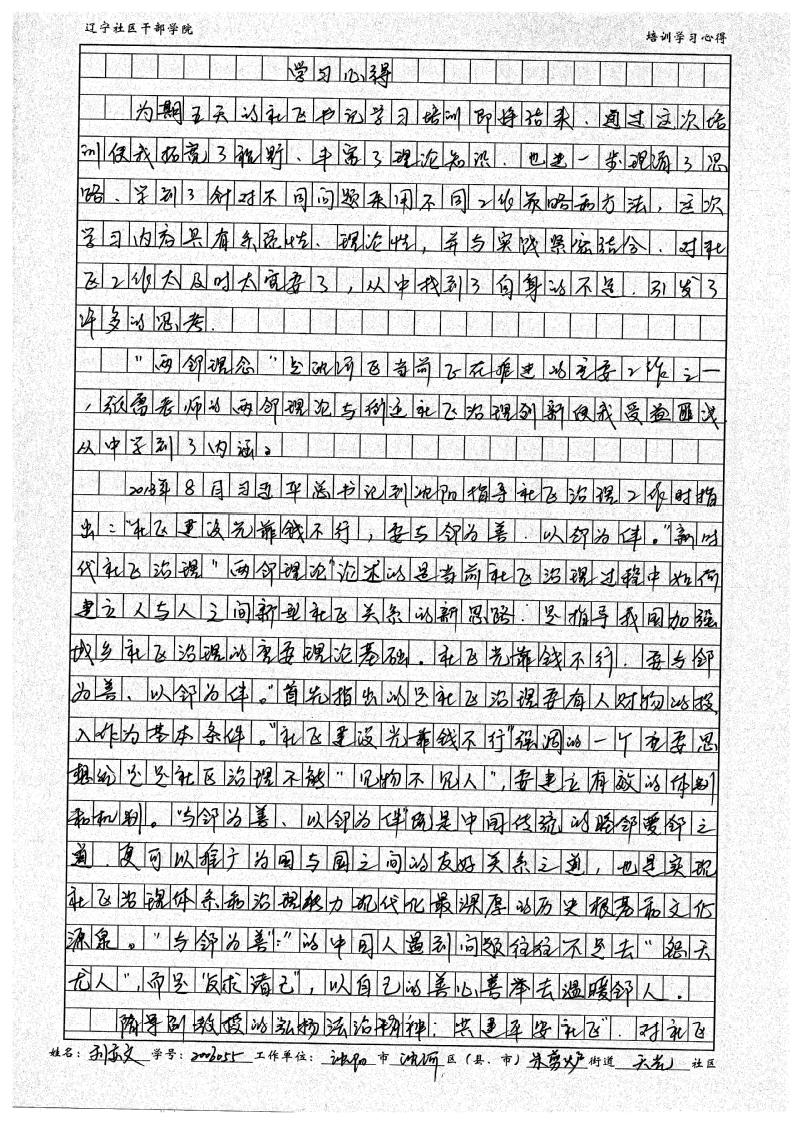 沈阳市沈河区朱剪炉街道天光社区书记刘亦文学习心得