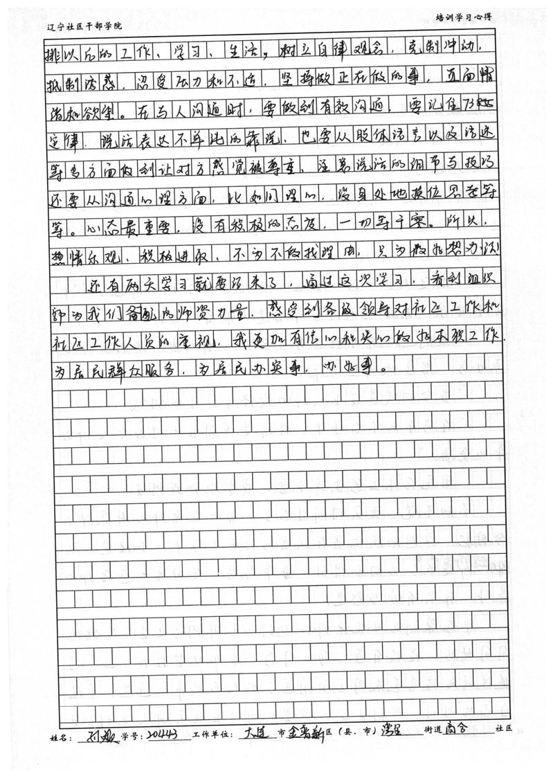 大连市金普新区湾里街道高合社区副书记孙颖学习心得
