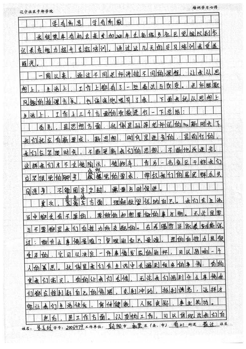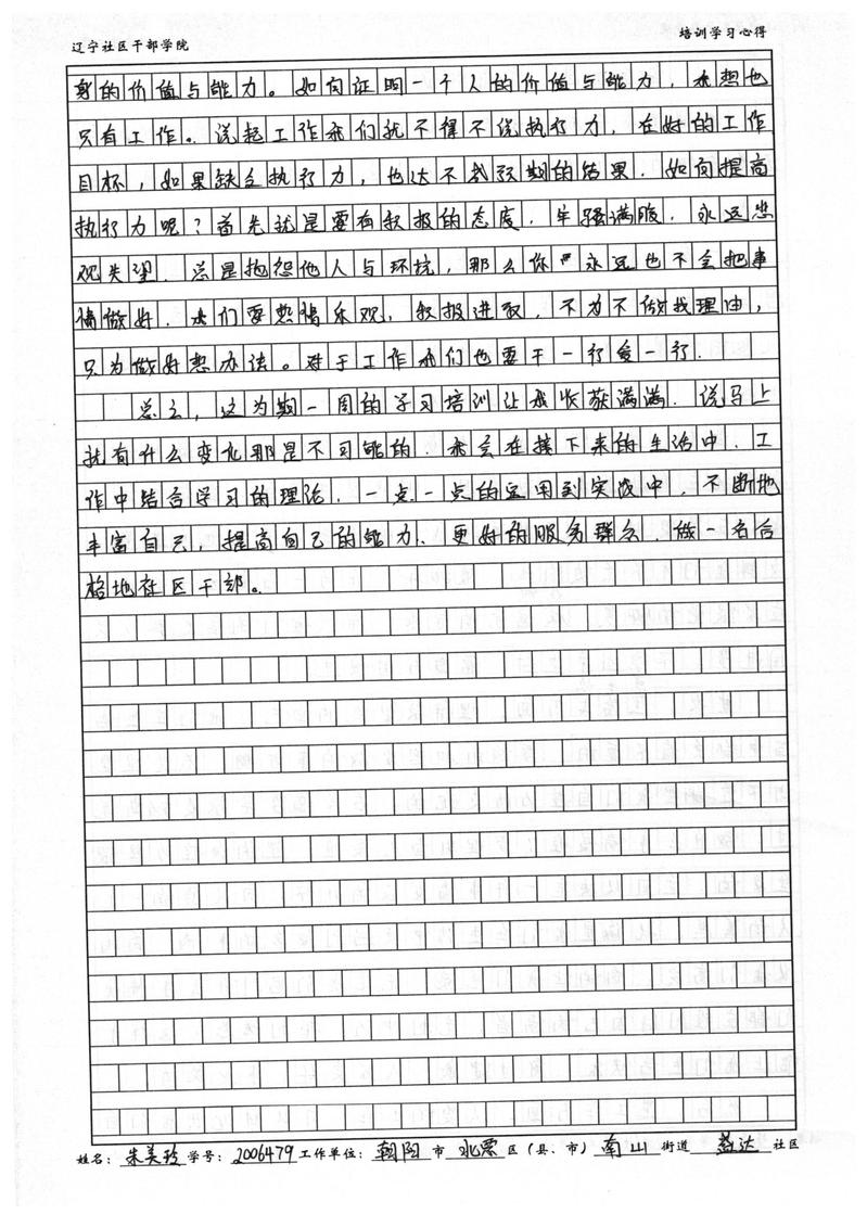 朝阳市北票市南山街道盛达社区副书记朱美玲学习心得