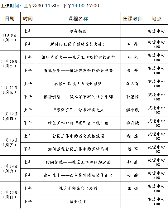 2020年全省城乡社区党组织副书记素质能力提升专题培训班第七期(总77期)培训班课程安排