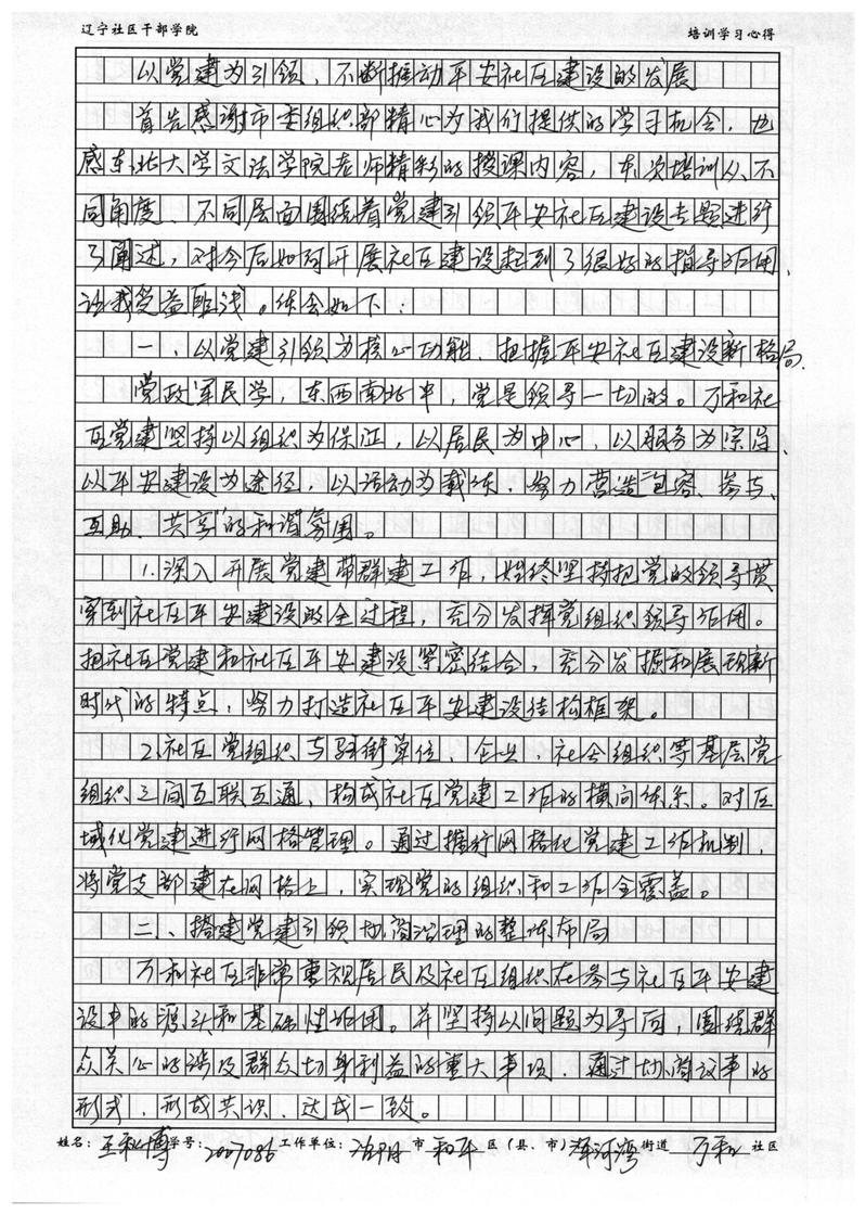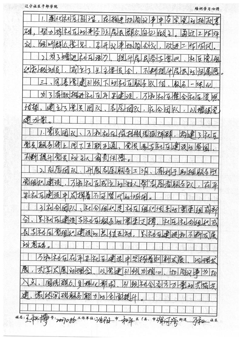 沈阳市和平区浑河湾街道万和社区书记王秋博学习心得