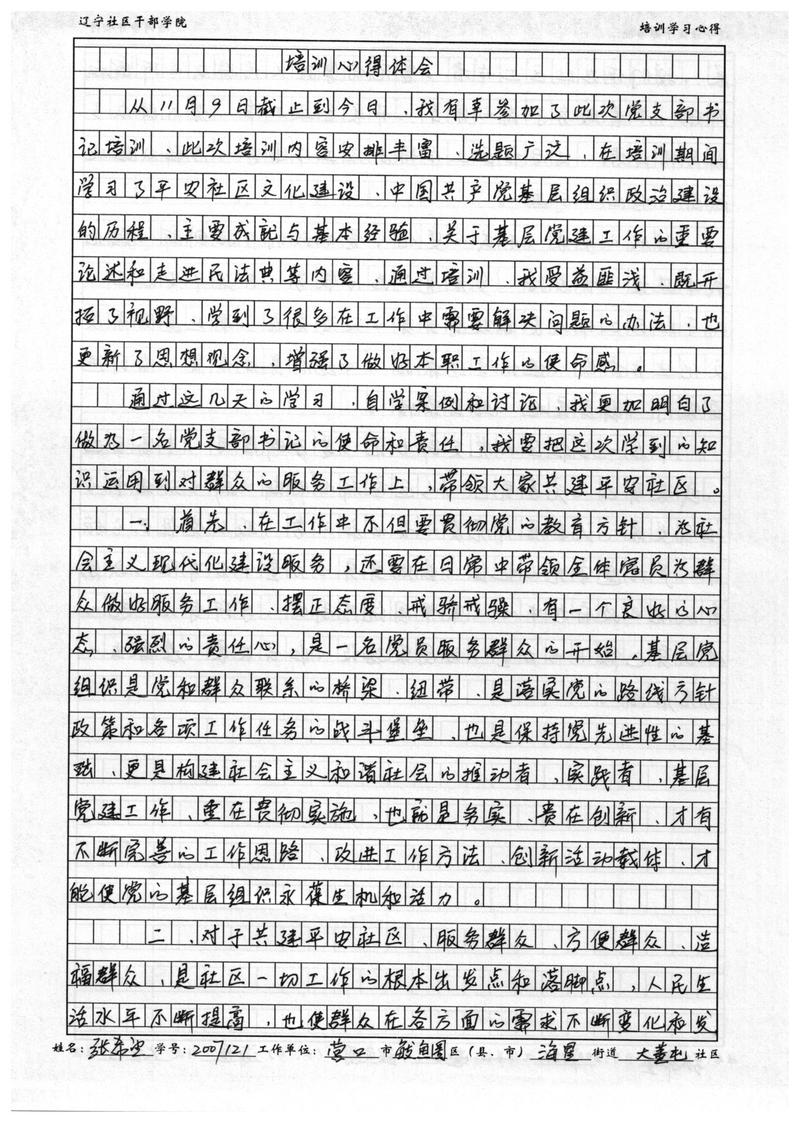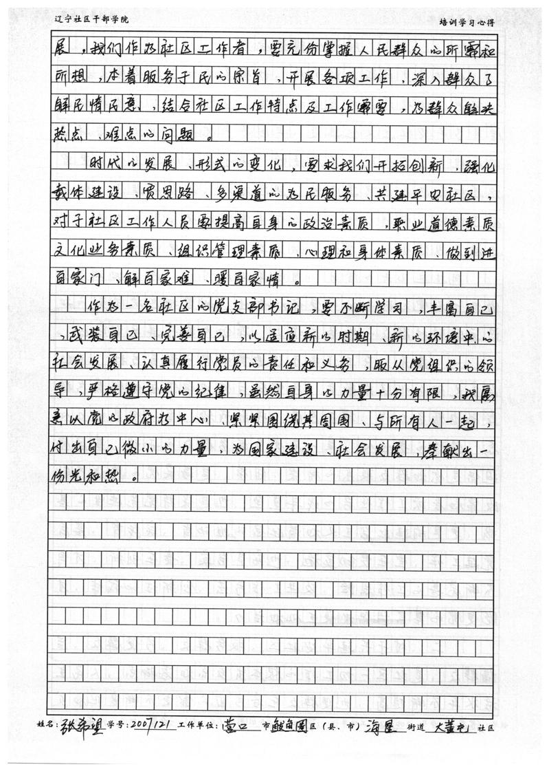 营口市鲅鱼圈区海星街道大董屯社区书记张希望学习心得