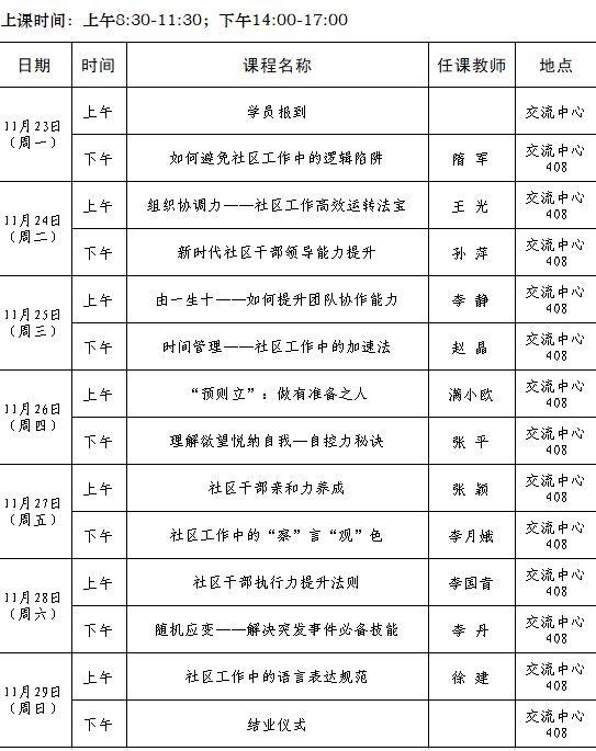 2020年全省城乡社区党组织副书记素质能力提升专题培训班第八期(总78期)培训班课程安排