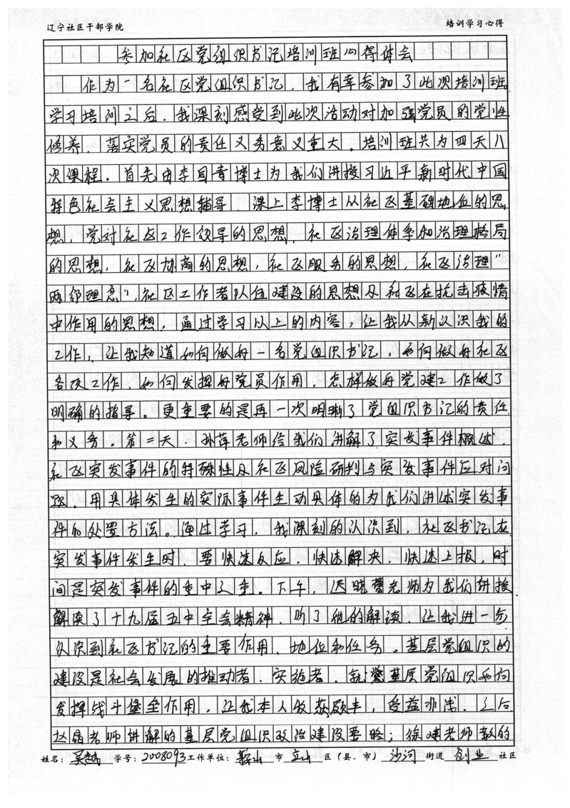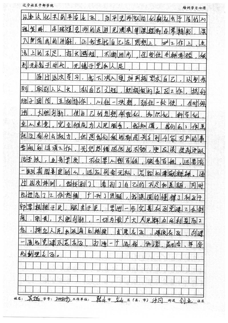 鞍山市立山区沙河街道创业社区书记吴越学习心得