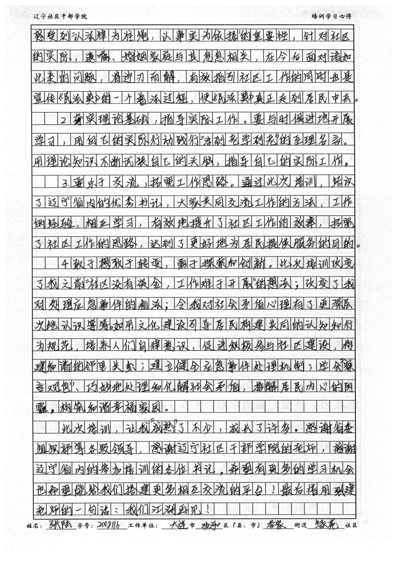 大连市沙河口区李家街道绿苑社区书记张陆学习心得
