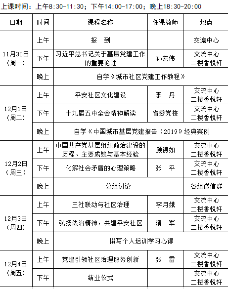 2020年全省城乡社区党组织书记党建引领平安社区建设专题第九期(总98期)培训班课程安排