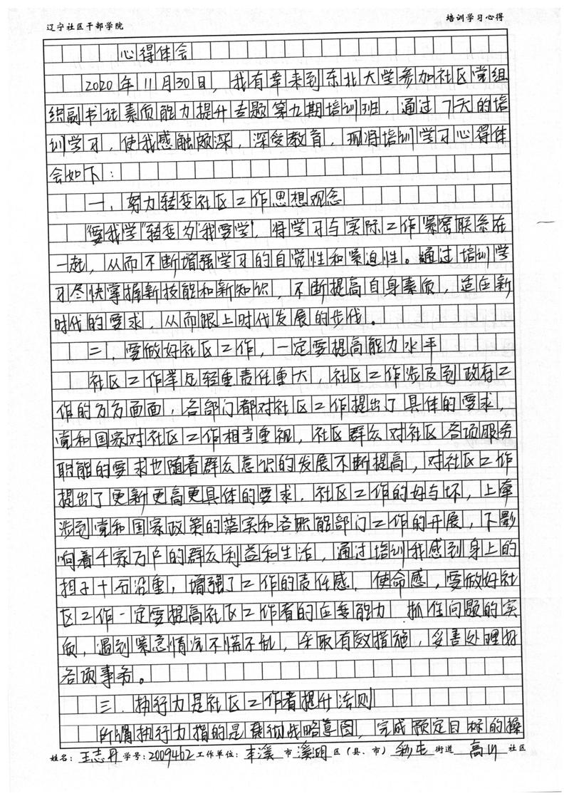 本溪市溪湖区彩屯街道高川社区副书记王志丹学习心得