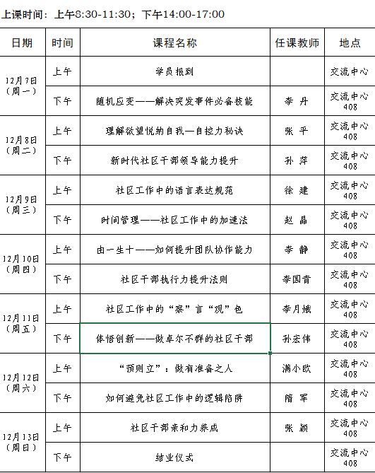 2020年全省城乡社区党组织副书记素质能力提升专题培训班第十期(总80期)培训班课程安排