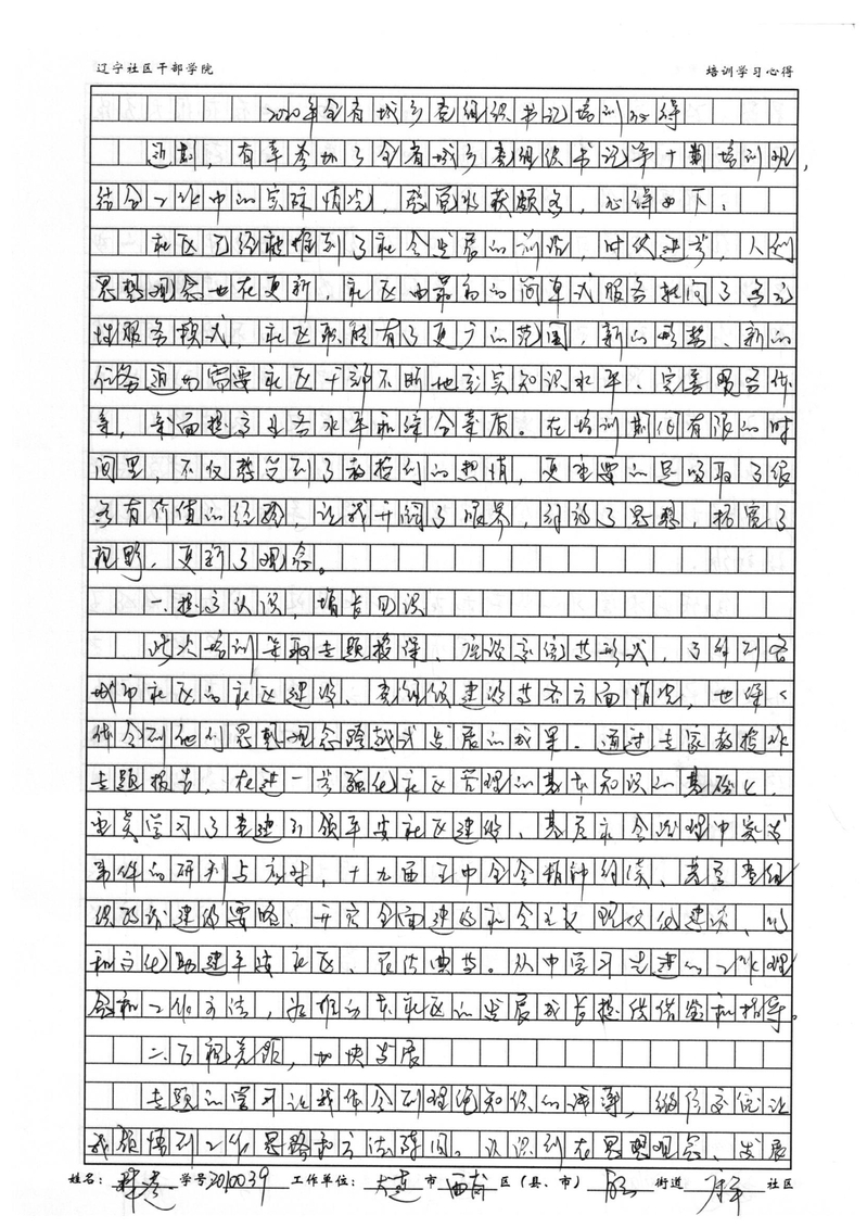 大连市西岗区白云街道康平社区书记林凌学习心得