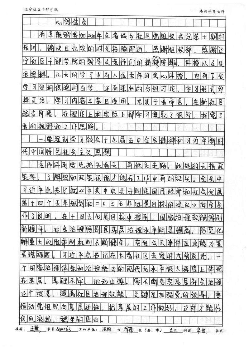 沈阳市浑南区五三街道华发社区书记王慧学习心得
